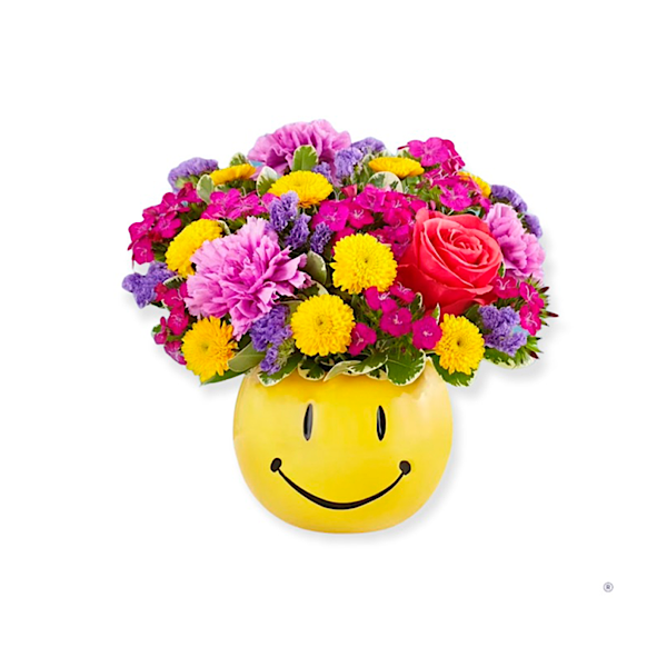 ¡Sonrisas entregadas todos los días! Esta efusiva mezcla de hermosas flores en miniatura entregadas a mano en nuestra sonriente taza de cerámica, es la manera perfecta de enviar tu amor en un día especial, ¡o cualquier día
