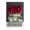 Beautiful and delicate circular box accompanied by an exclusive and select collection of beautiful red roses with delicious Ferrero chocolates that will help you surprise your loved one.