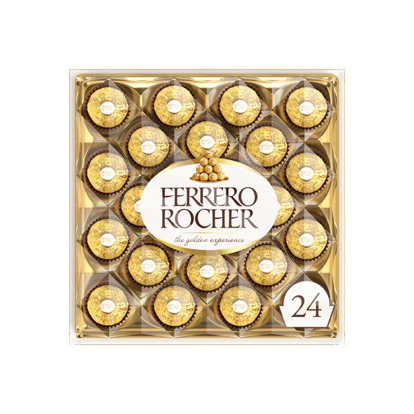 Add this delicious box of chocolates to your order. A gift box contains a single layer of 24 Ferrero Rocher hazelnut chocolates.