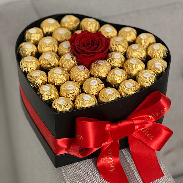 Beautiful and delicate heart with delicious Ferrero chocolates, accompanied by an exclusive and select collection of beautiful rose that will help you surprise your loved one.